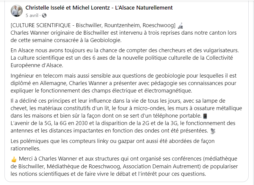 Formé et aujourd’hui formateur pour la partie électrique au Forschungskreis für Geobiologie du Docteur Ernst Hartmann E.v en Allemagne , lors de mes conférences je partage des bonnes pratiques pour un meilleur équilibre au quotidien.